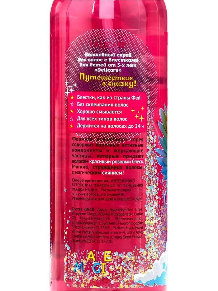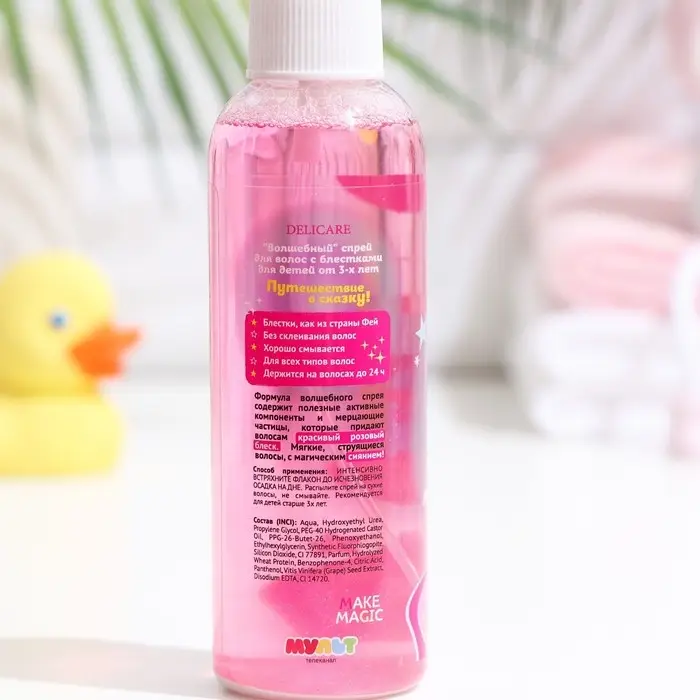 Спрей для лёгкого расчёсывания Delicare "Сказочный Патруль" с блёстками – это яркое и эффективное средство для ухода за детскими волосами, которое не только облегчает процесс расчёсывания, но и добавляет волосам волшебное сияние.