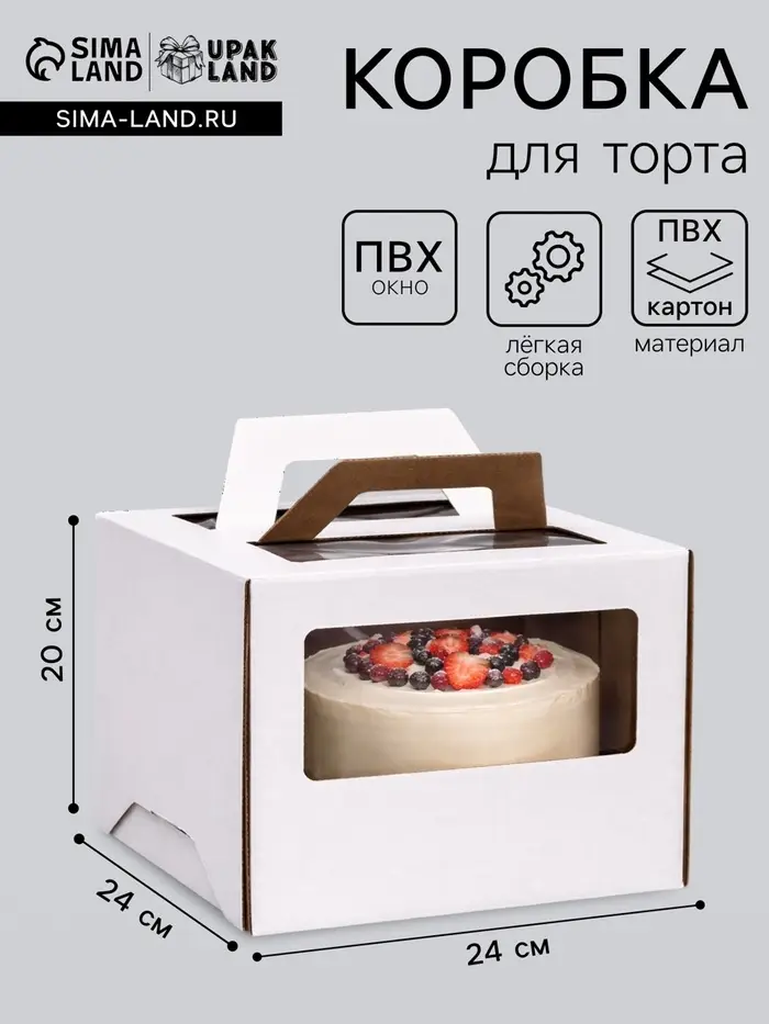 - Классический белый цвет: Нейтральный оттенок сочетается с любым оформлением десерта и праздничным декором. Коробка выглядит эстетично и не отвлекает внимание от содержимого.