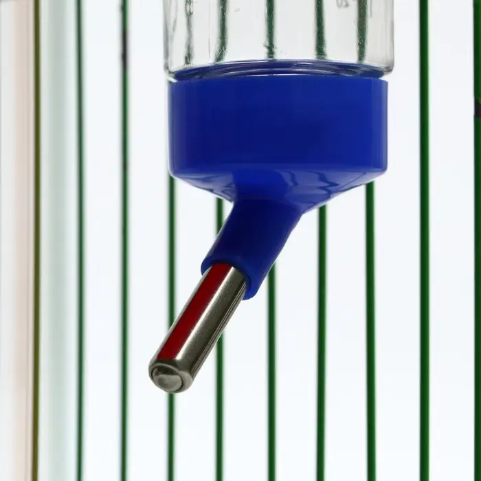 - Универсальное крепление: поилка надёжно фиксируется на прутьях клетки — не шатается, не падает и не мешает движению питомца.