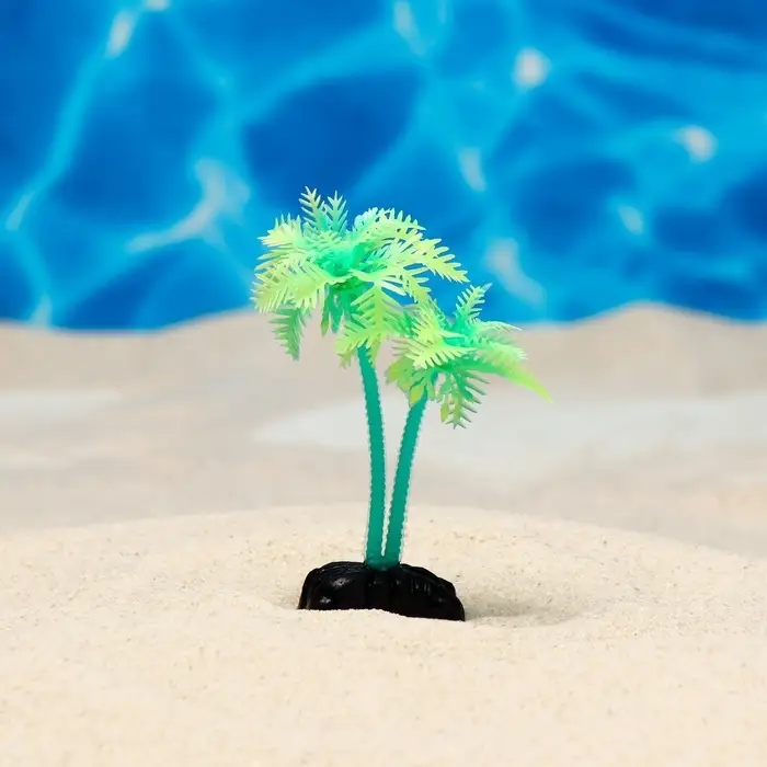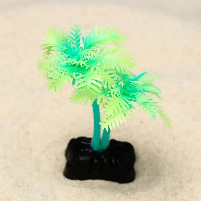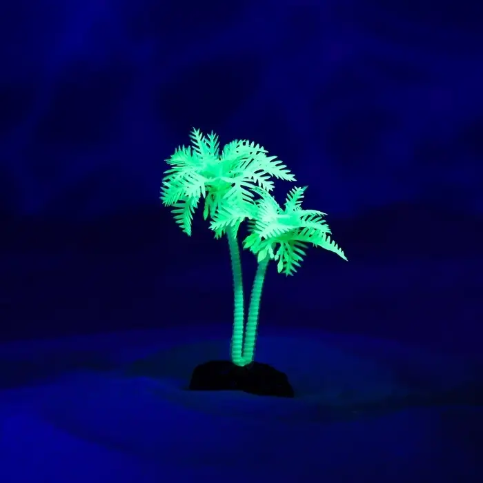 Растение для аквариума и террариума «Пальма», светящееся, 10 см, зелёное