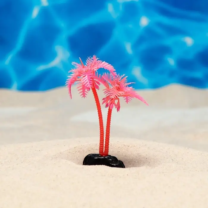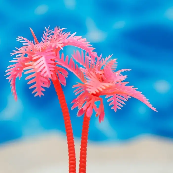 Растение для аквариума и террариума «Пальма», светящееся, 10 см, красное