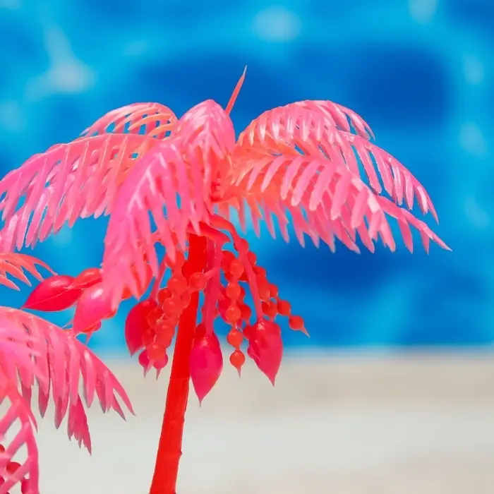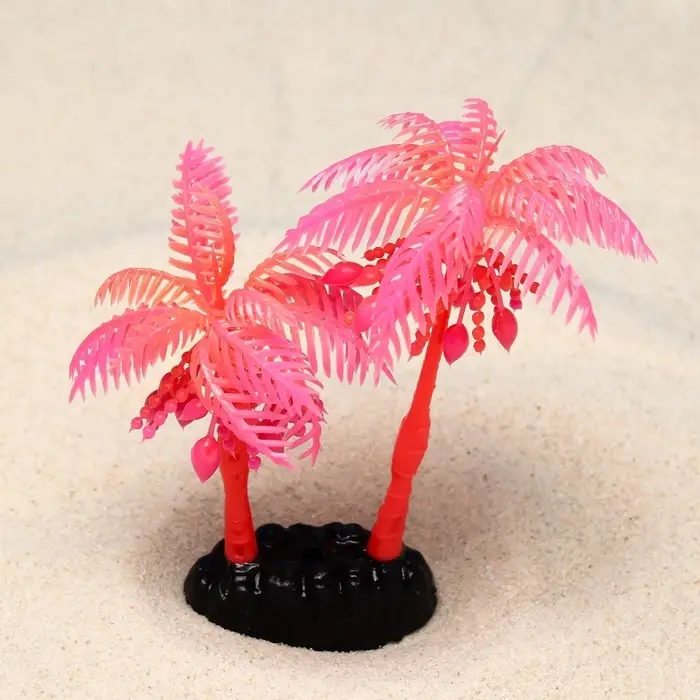 Растение для аквариума и террариума «Пальма», светящееся, 10 см, красное