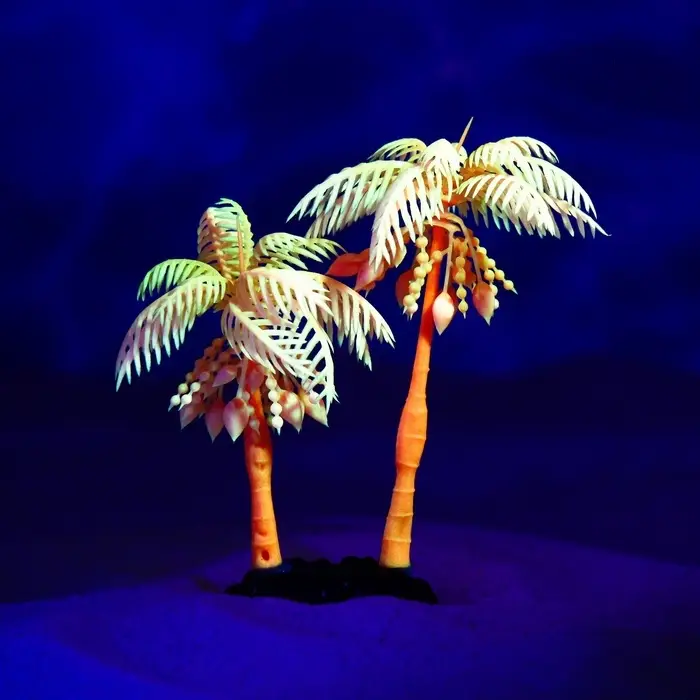Растение для аквариума и террариума «Пальма», светящееся, 14 см, красное
