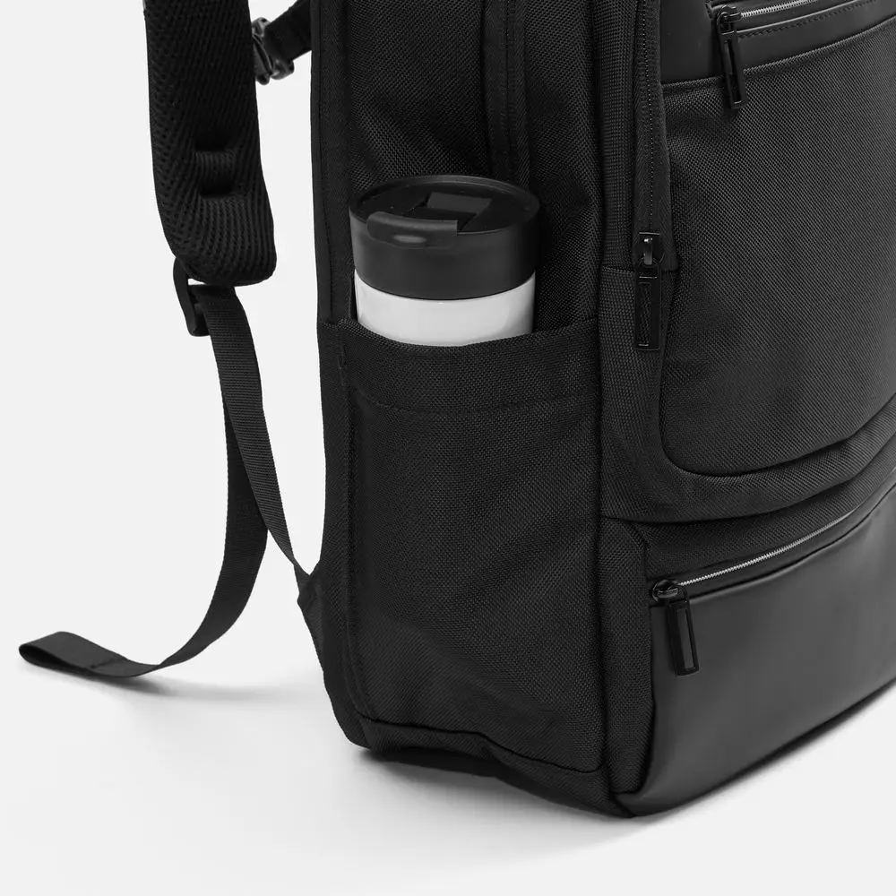 Для быстрого доступа к мелочам предусмотрены три передних кармана на молнии, а по бокам расположены два вместительных кармана, которые идеально подходят для бутылки с водой или зонта.
