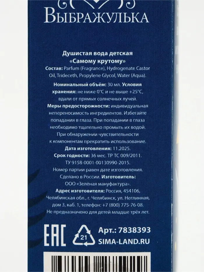 Душистая вода для мальчиков «Самому крутому» с ароматом яблока и бергамота отлично подойдёт в качестве первого парфюма малыша. Аромат лёгкий, не слишком насыщенный — как раз для маленького хулигана.