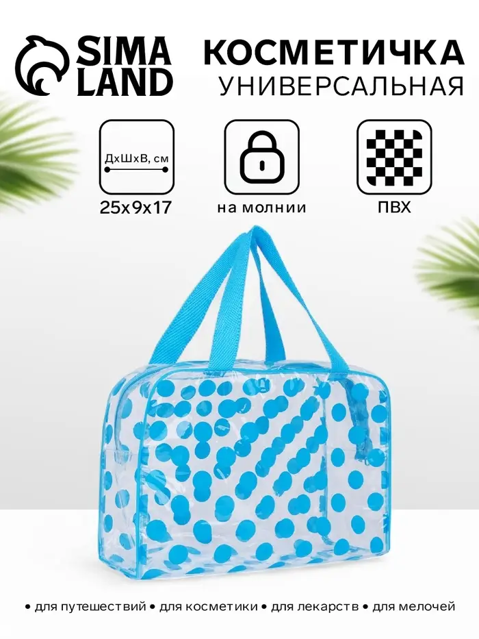 Косметичка-сумка на молнии для бассейна, с ручками, в горох, голубая