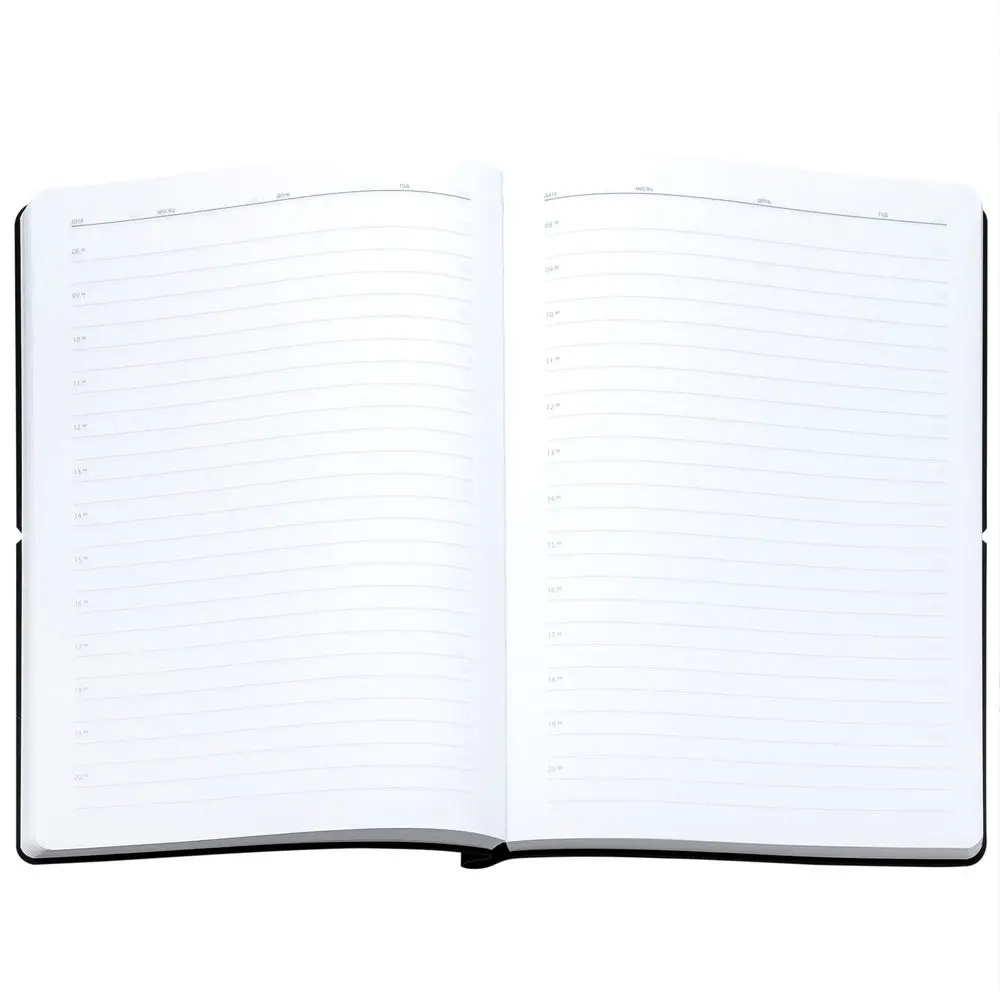 Ежедневник с гибкой обложкой выполнена из материала Nice Touch, черный и Latte, черный (внутренняя часть обложки), дополнен горизонтальной резинкой в цвет обложки. Внутри корешка — специальное место для крепления ручки размером до 15х1 см.