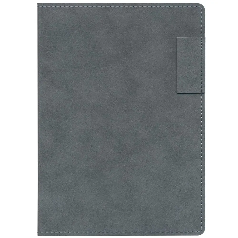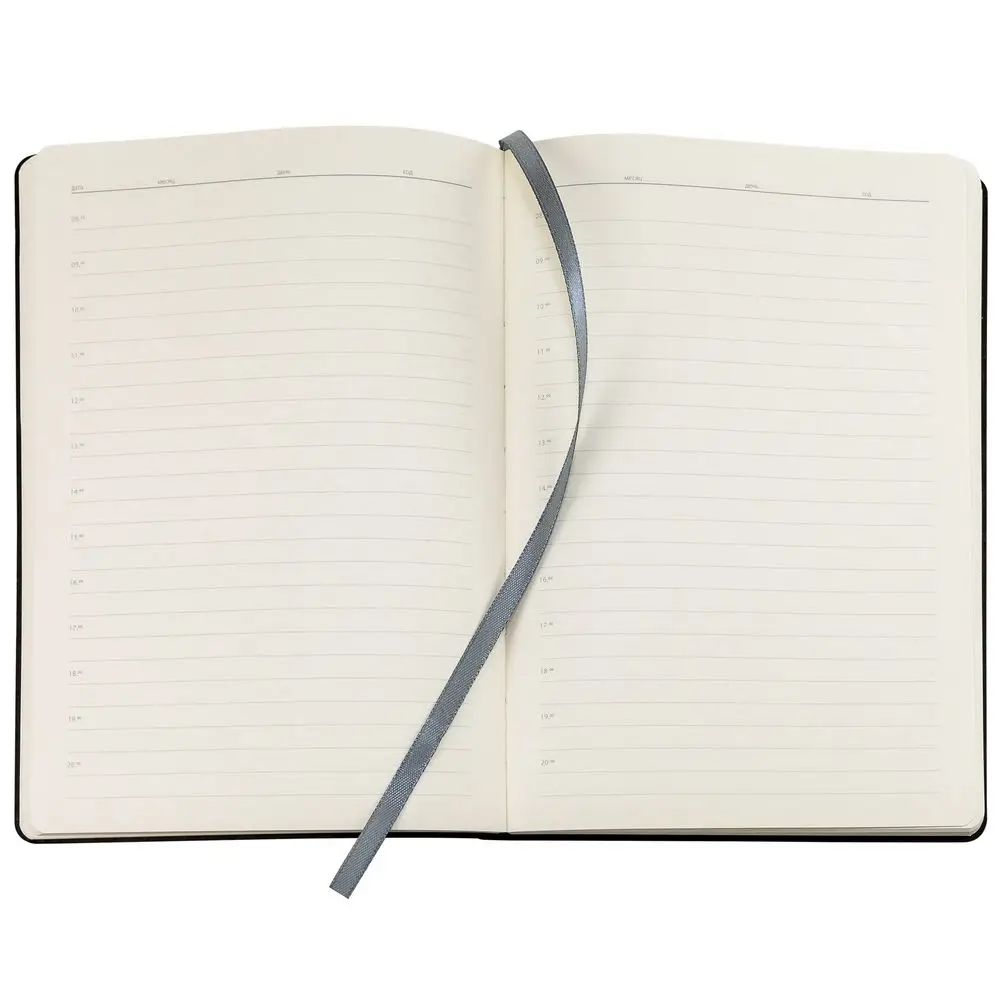 Ежедневник с гибкой обложкой, выполнен из материала Nubuck, темно-серый ЕЕ, дополнен петлей-лейблом для ручки и ляссе в цвет материала.
