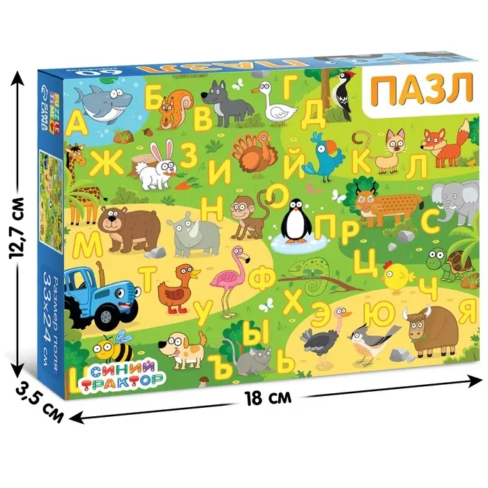Пазл «Изучаем алфавит» из серии «Синий трактор» — это настольная игра для детей от 3 лет, сочетающая обучение с увлекательной сборкой. В комплекте — 60 картонных элементов, из которых можно собрать яркую картинку. Тематика мультфильмов и образы с трактором привлекают внимание и делают процесс познания естественным.