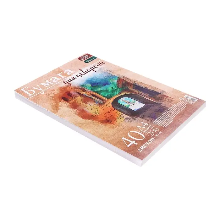 В художественном образовании качество бумаги напрямую влияет на результат. Тонкие листы деформируются от воды, не держат заливку и рвутся от ластика. Плотность 200 г/м² решает эти проблемы: бумага остаётся идеально ровной, краски ложатся предсказуемо, а исправления не оставляют следов. Среднезернистая фактура универсальна — на ней одинаково хорошо работают и акварельные заливки, и гуашевые мазки, и графические элементы. 40 листов формата А4 — это запас на целый семестр или на подготовку полноценного портфолио. Термоусадочная плёнка защищает бумагу от влаги и загрязнений, сохраняя её в идеальном состоянии до момента использования. Это выбор для студентов художественных вузов, преподавателей и всех, кто привык работать на совесть и не готов рисковать результатом из-за экономии на материале.
