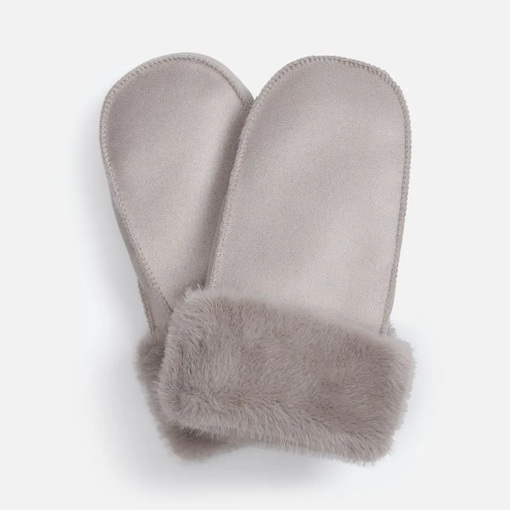 Снаружи варежки изготовлены из высококачественной искусственной замши, а внутри из искусственного меха, благодаря чему надежно защищают руки от холода и обеспечивают превосходную теплоизоляцию. Манжеты варежек можно отогнуть, тем самым удлинив их, или оставить как есть — в любом случае руки будут надежно защищены от ветра и снега.