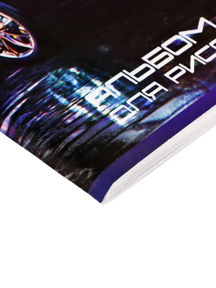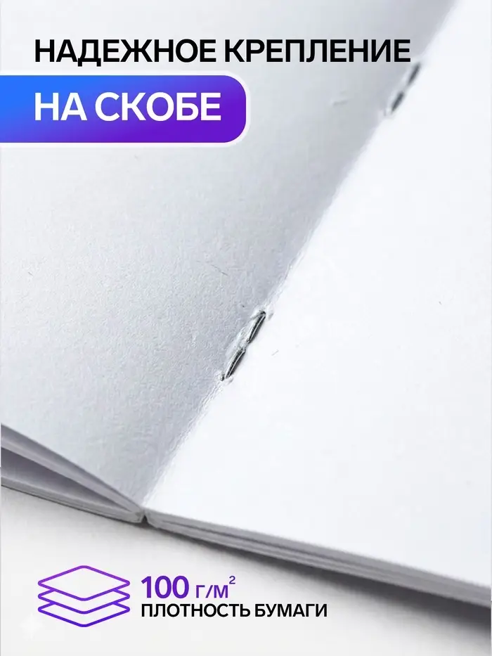 - Надёжное скрепление на скобе помогает страницам лежать ровно, создавая удобную поверхность для рисования в любом месте.