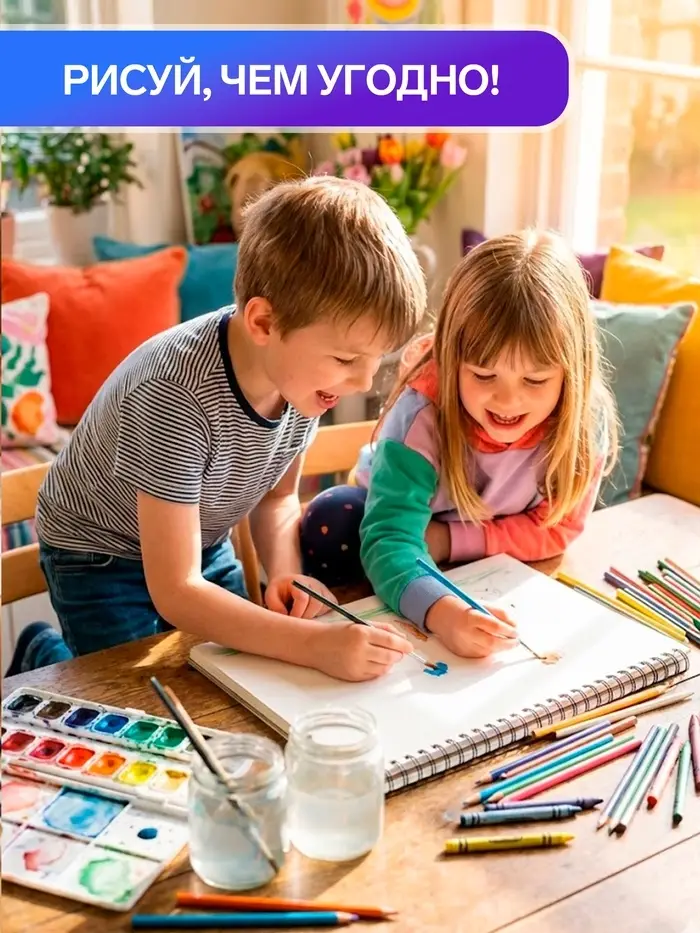 - Плотная бумага 100 г/м² сохраняет чистоту работы, не деформируется от фломастеров и подходит для смешанных техник.