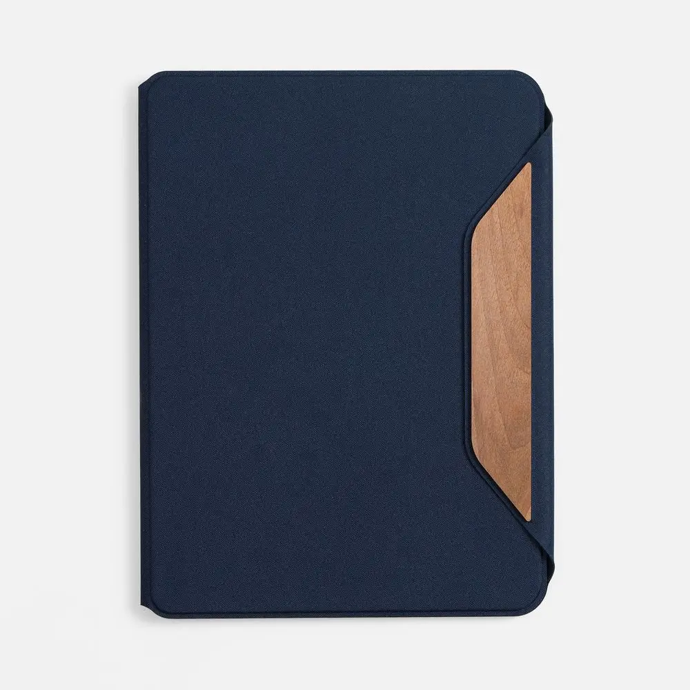 В папке множество карманов для эффективной организации важных бумаг, карточек и визиток — чтобы всегда иметь самое необходимое по рукой. Папка надежно закрывается на магнитный клапан с контрастной деревянной вставкой.