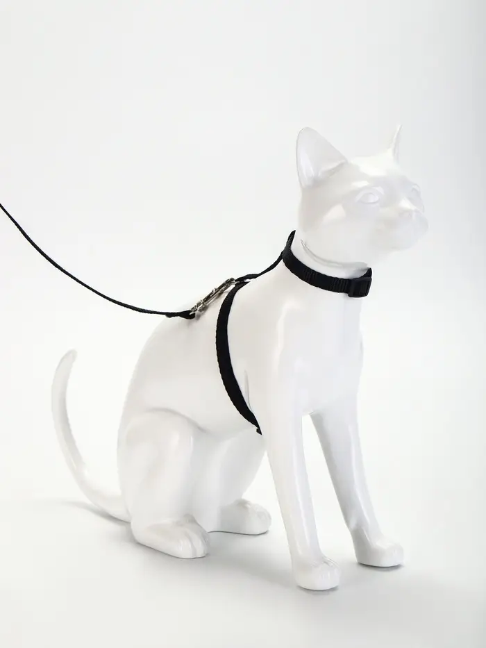 Комплект для кошек, ширина 1 см, ОШ 16.5-27 см, ОГ 21-35 см, поводок 120 см, чёрный