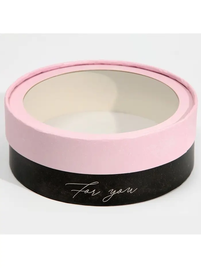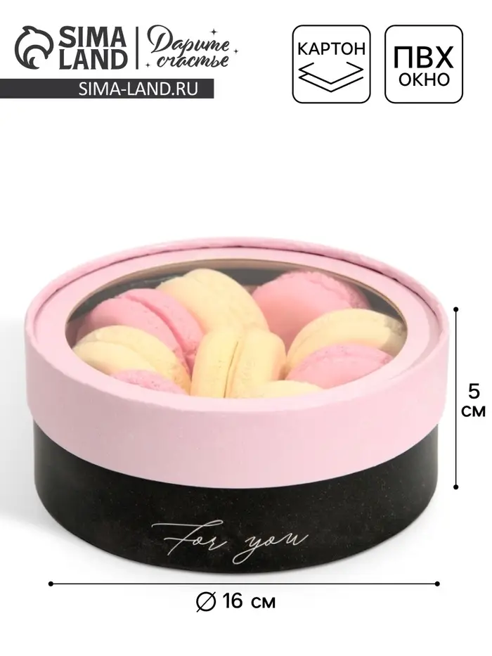Коробка для макарун, кондитерская упаковка тубус с окном, For you 16×16×5 см