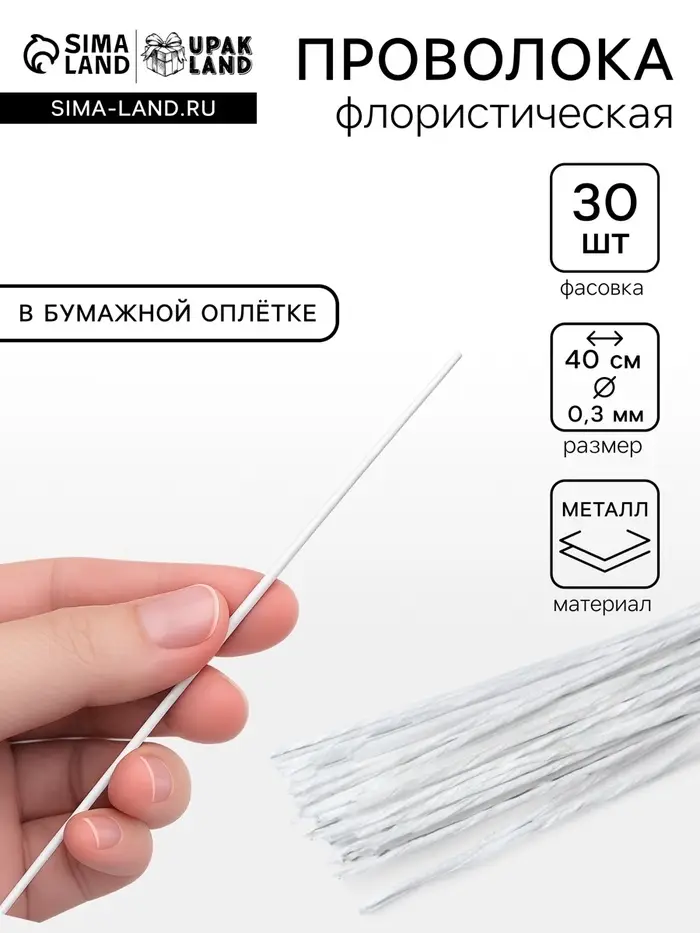 Невесомая точность для ювелирной работы! Белая флористическая проволока 0.3 мм в бумажной оплетке — это специализированный материал для тончайших флористических работ. Минимальный диаметр обеспечивает деликатную работу с хрупкими бутонами и создание изящных композиций.
