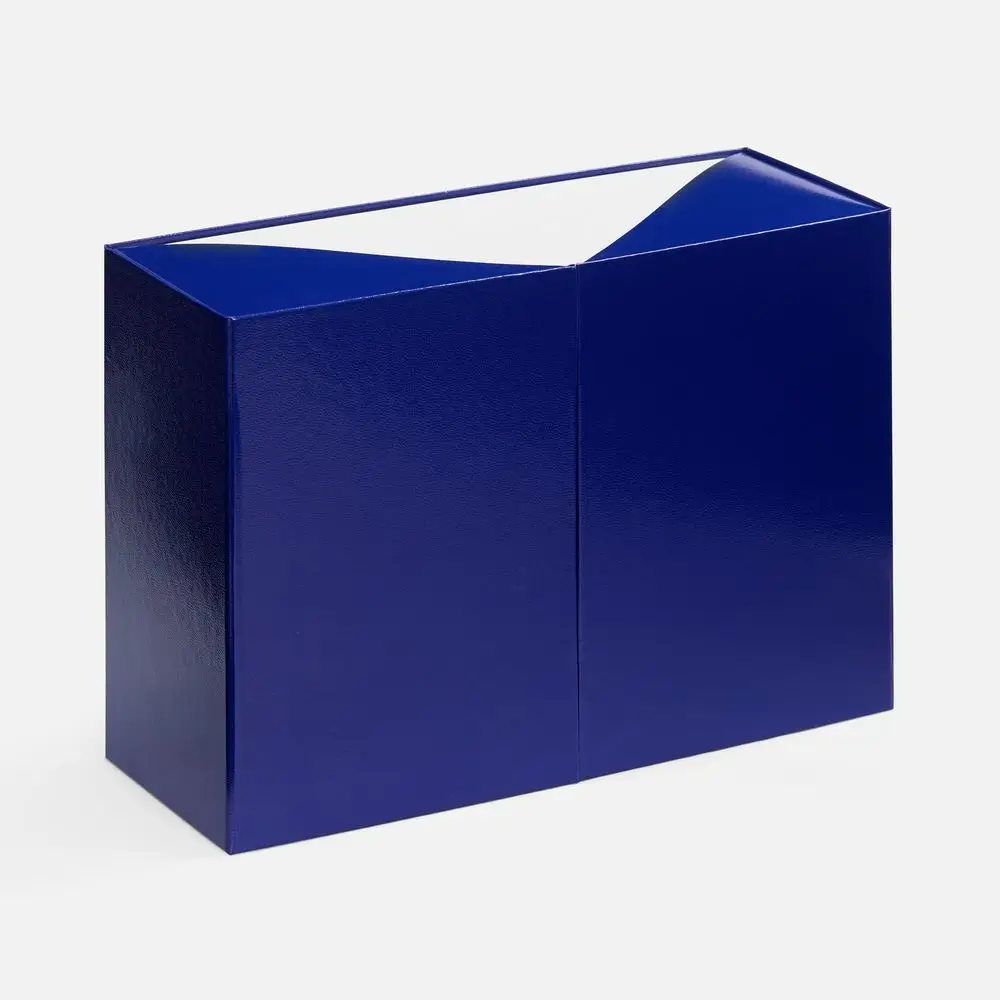Коробка из переплетного картона 2 мм с оригинальной конструкцией: две симметричные створки открываются, создавая эффектную презентацию содержимого. Складная система на предустановленный двусторонний скотч делает сборку коробки быстрой и интуитивно понятной.