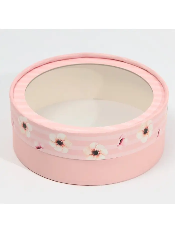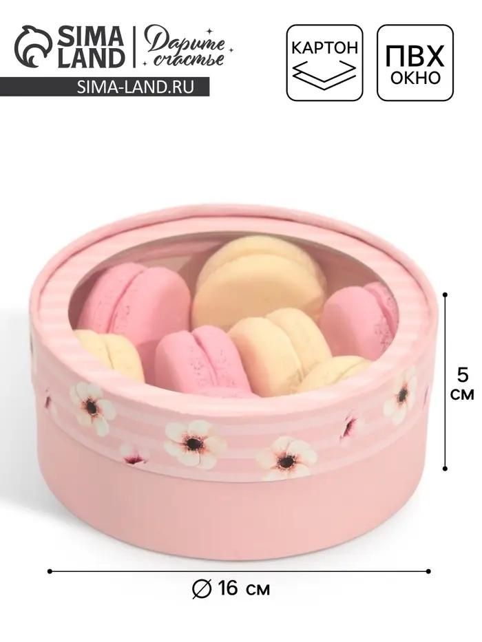 Коробка для макарун, кондитерская упаковка тубус с окном, «Цветы» 16×16×5 см