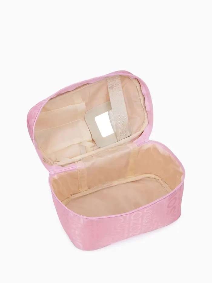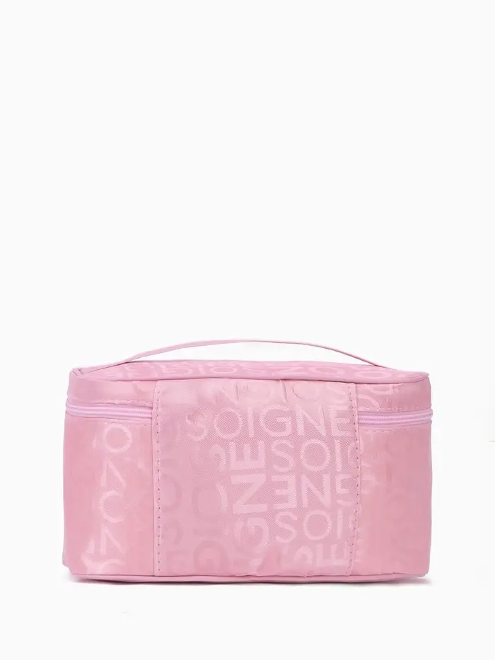 Эта розовая косметичка с буквами — стильный и практичный органайзер для всего самого необходимого. Её средний размер идеально подходит для ежедневного использования, хранения кистей для макияжа или аксессуаров для путешествий. Косметичка на молнии с одним отделением и мягкой подкладкой надёжно защищает содержимое, а удобная ручка позволяет легко брать её с собой.
