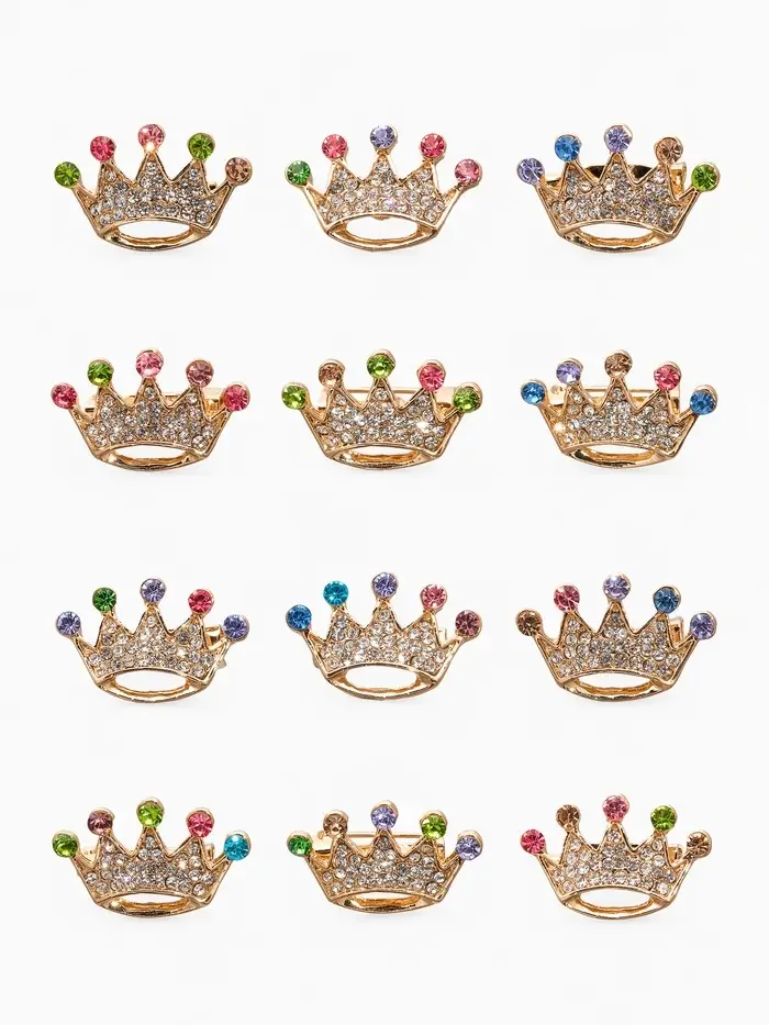 Брошь «Корона», радужная, цветная в жёлтом золоте