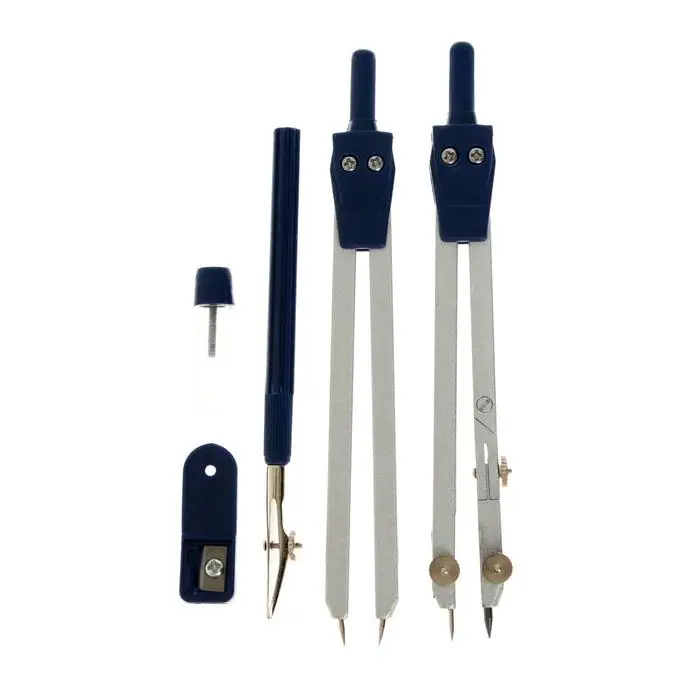 Этот универсальный чертёжный набор объединяет функции для построения окружностей, прямых линий и углов. Два одинаковых циркуля полезны при совместной работе или как запасной вариант, если один инструмент выйдет из строя.