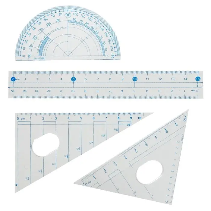 - Линейка, транспортир и угольники позволяют выполнять полный цикл геометрических построений.