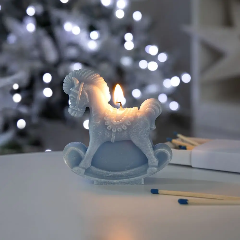 Свеча фигурная «Лошадка-качалка», голубая