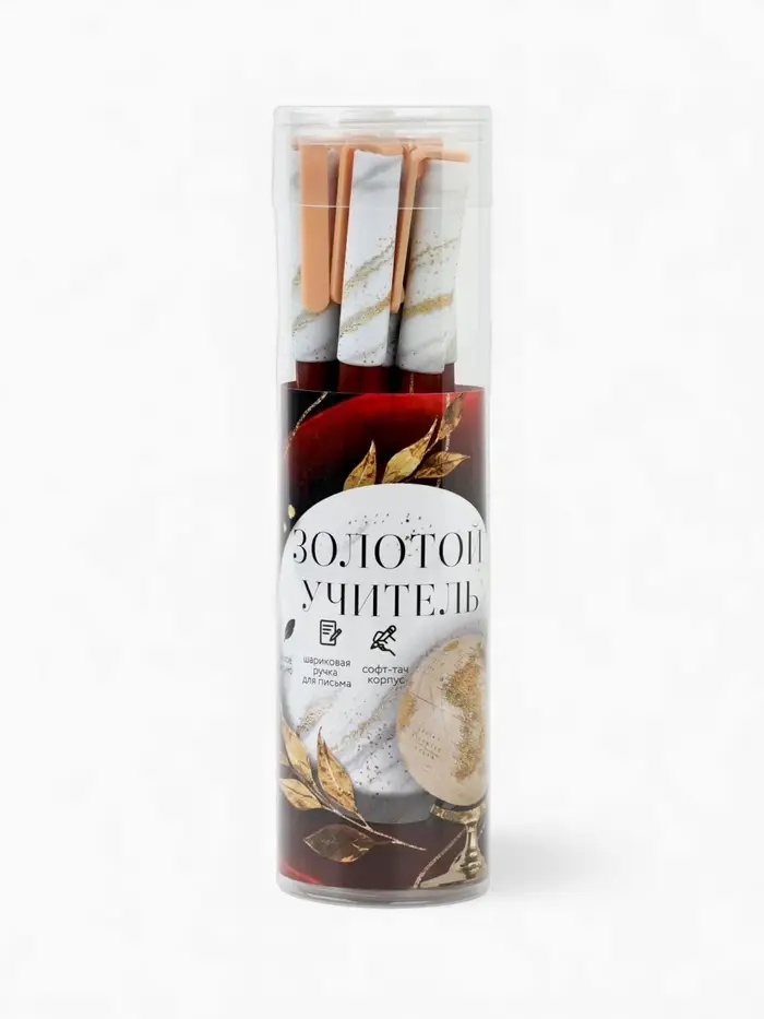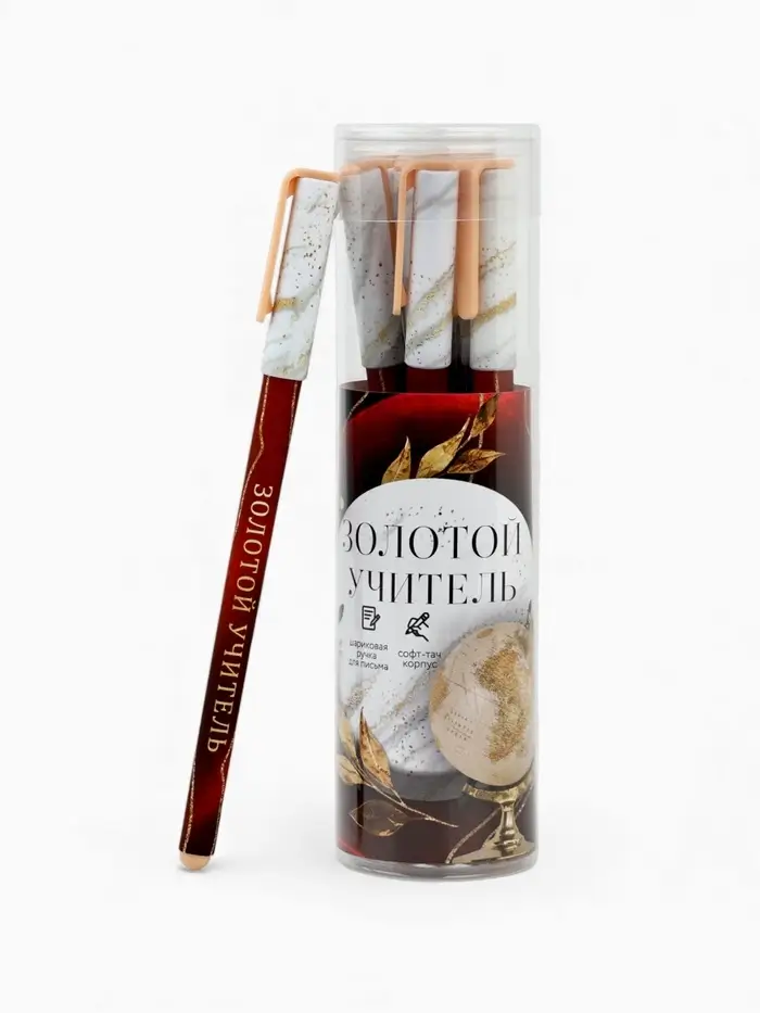 Ручка шариковая, синяя паста, 0.7 мм, пластик, софт-тач «Золотому учителю»