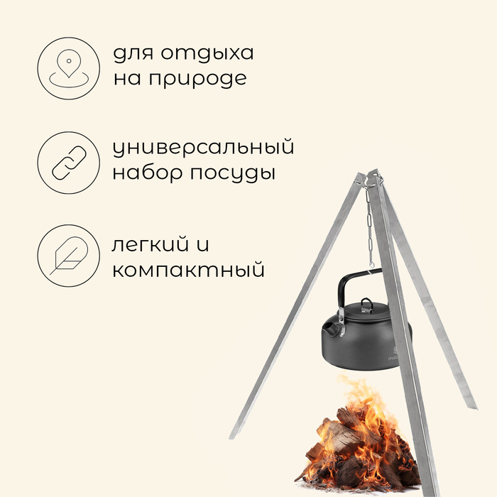 Набор походной посуды из анодированного алюминия позволяет соединить в себе приготовление еды и напитков. Имеет откидные переносные ручки с термоизолирующим покрытием, которые экономят объем при транспортировке, делая использование посуды более комфортным.