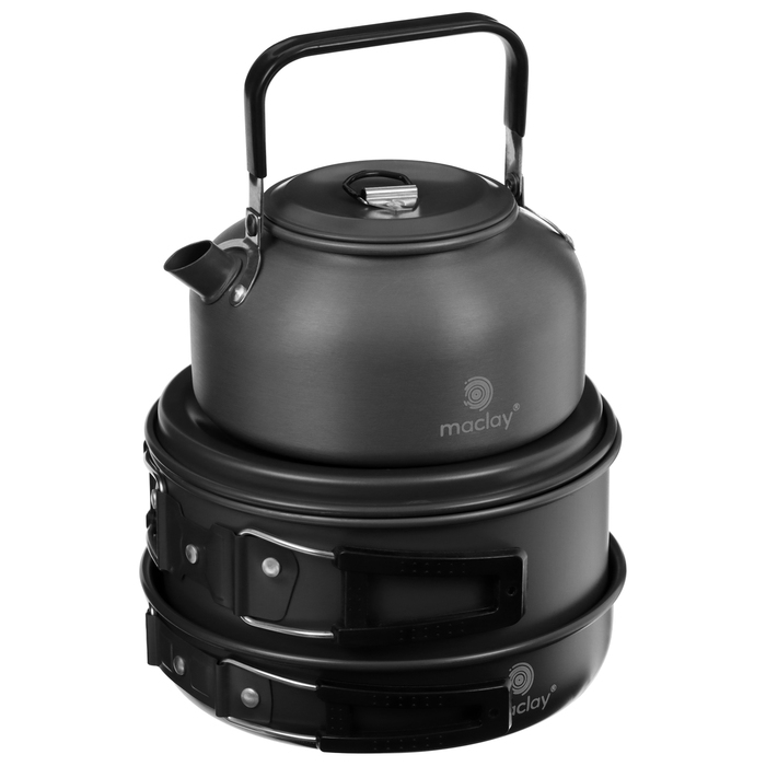 Набор туристической посуды Maclay: чайник, кастрюля, сковорода, 3 чашки, черпак, лопатка, губка