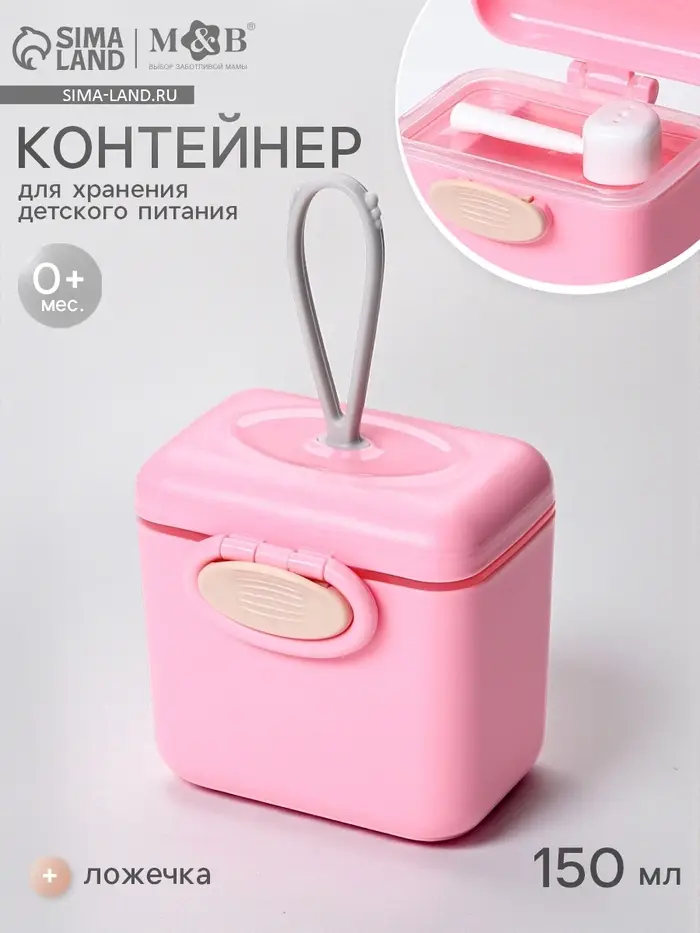 Контейнер для хранения детского питания 150 мл., с ложкой, розовый