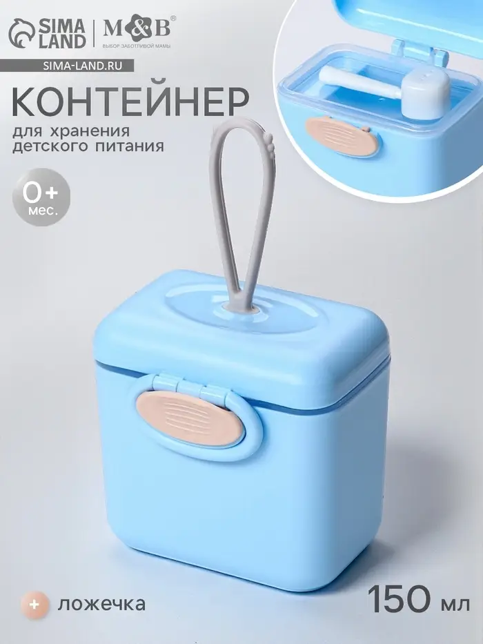 Контейнер для хранения детского питания 150 мл., с ложкой, голубой