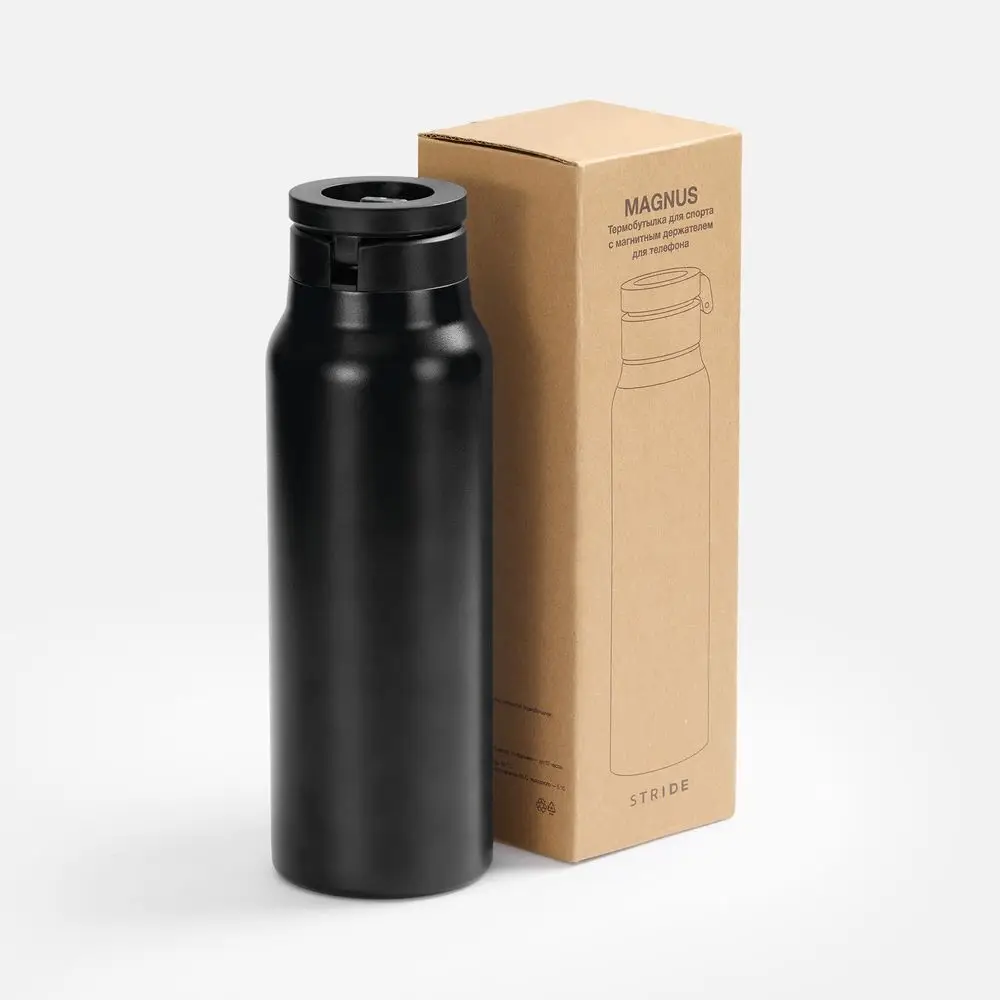 Термобутылка Magnus с магнитным держателем для телефона, черная