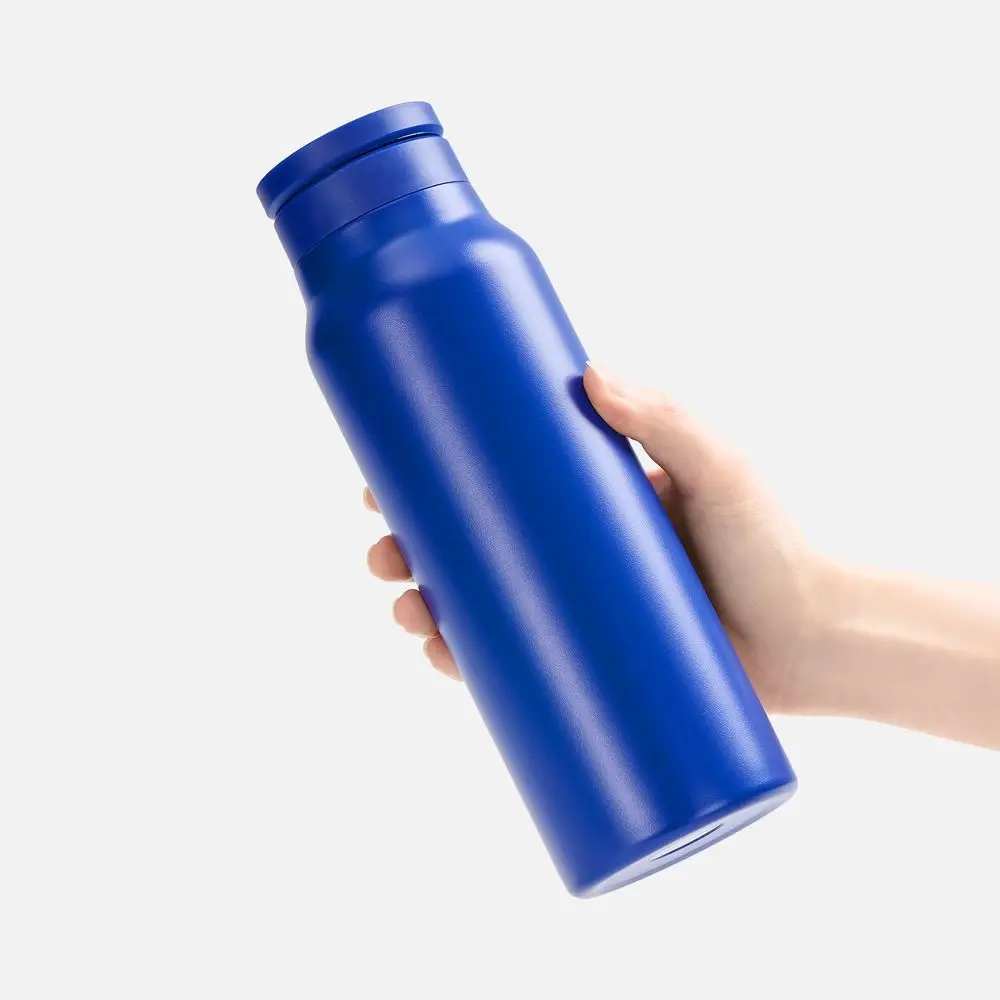 Корпус из нержавеющей стали с матовым порошковым покрытием приятно лежит в руке, устойчив к ударам и сохраняет аккуратный внешний вид даже при активном использовании. Объем 660 мл оптимален для спорта, прогулок и поездок — воды хватит, чтобы не сбиваться с ритма.