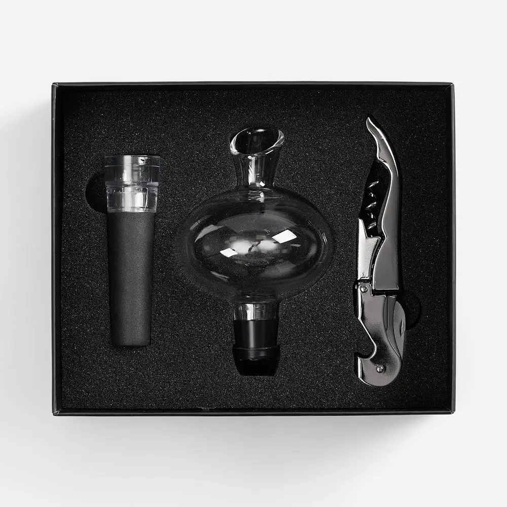 Нож сомелье легко извлекает пробку из бутылки, аэратор насыщает вино воздухом и улучшает его вкус, а винная пробка с насосным механизмом обеспечивает герметичность, продлевая свежесть напитка и сохраняя его лучшие вкусовые качества.