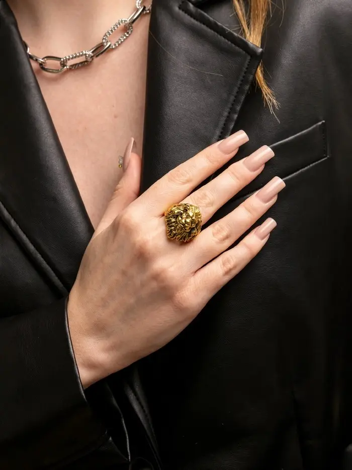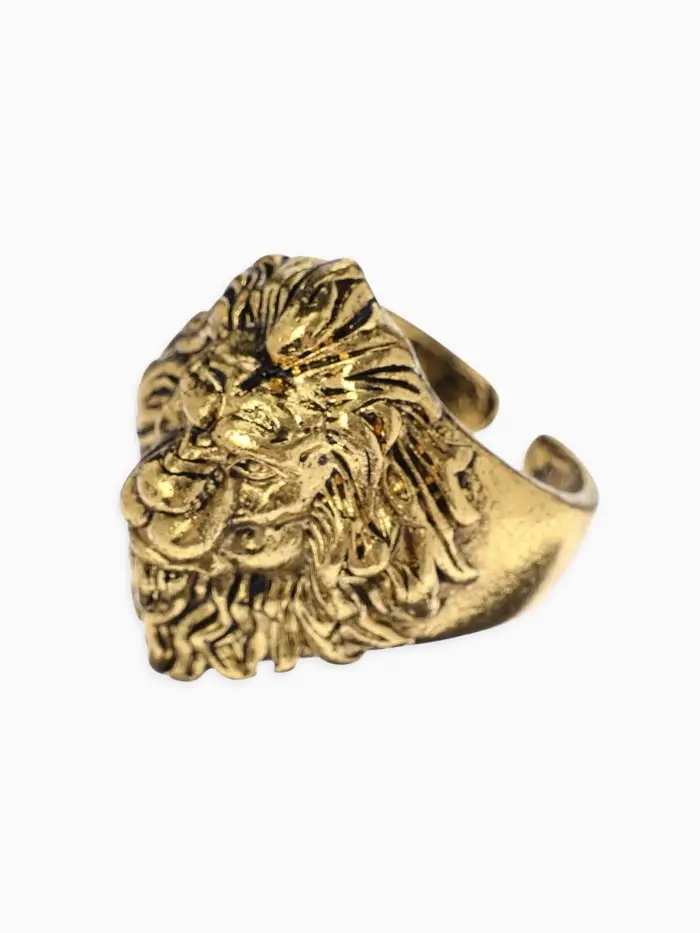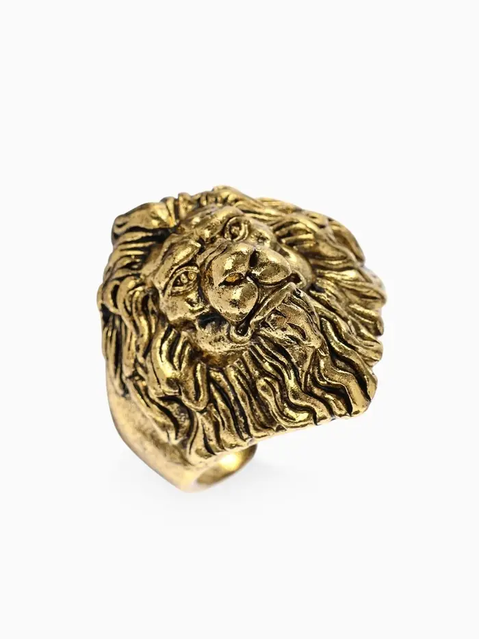 Кольцо «Перстень», лев, цвет чернёное золото, безразмерное