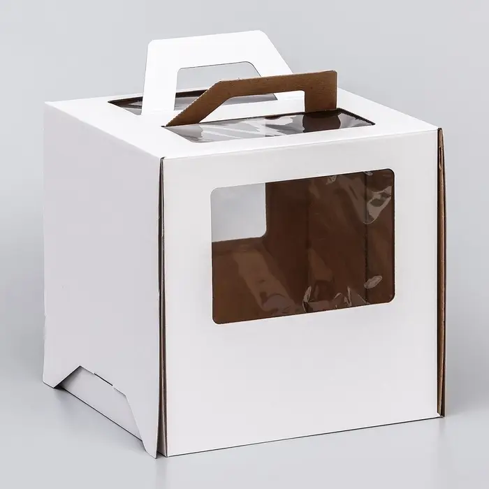 Коробка под торт 2 окна, с ручками, белая, 26×26×26 см
