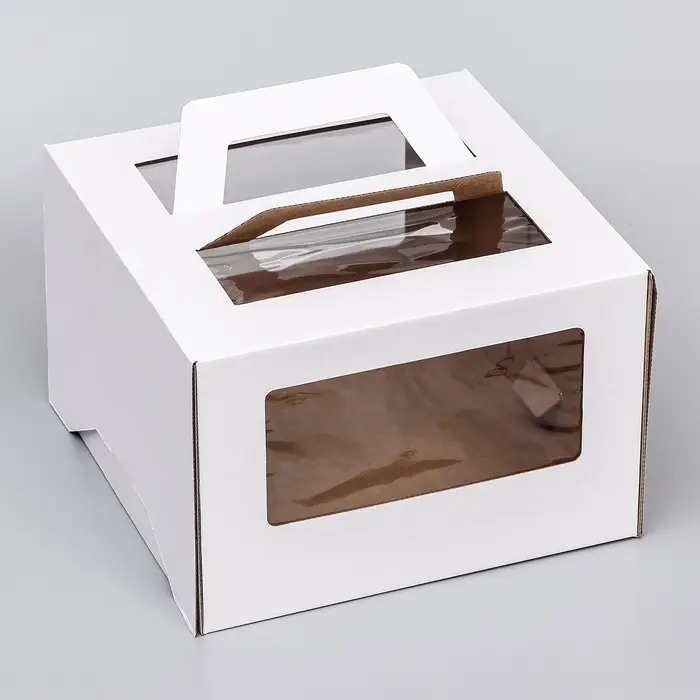 Коробка под торт 2 окна, с ручками, белая, 30×30×20 см