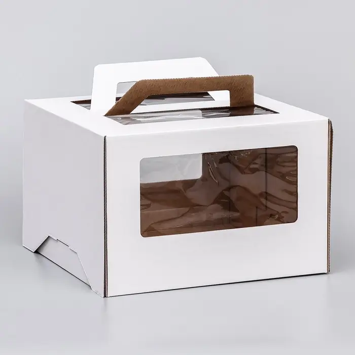 - Стороны коробки укреплены, что гарантирует надежную защиту торта от повреждений при транспортировке.