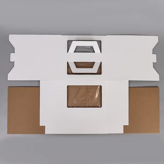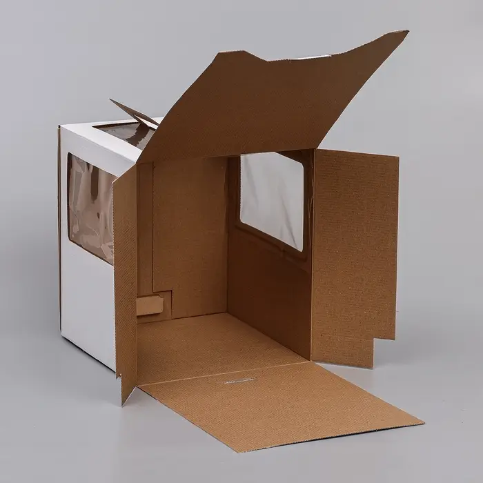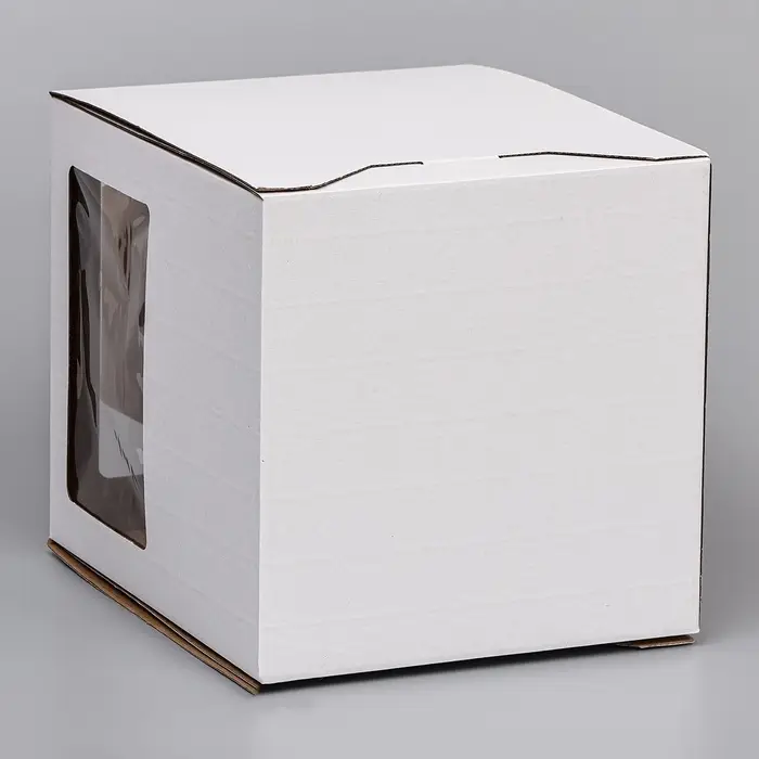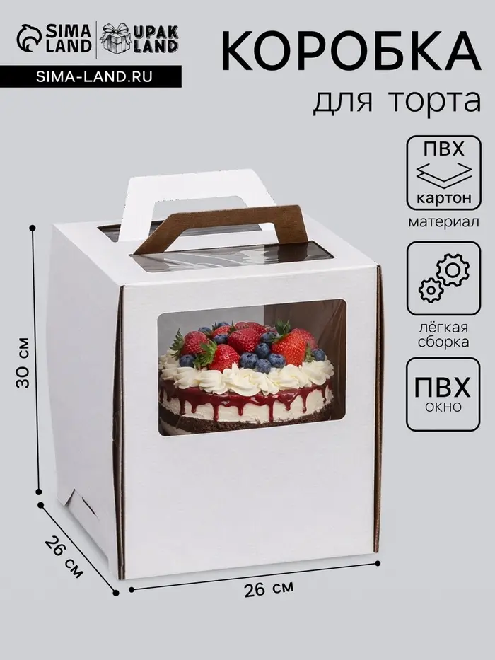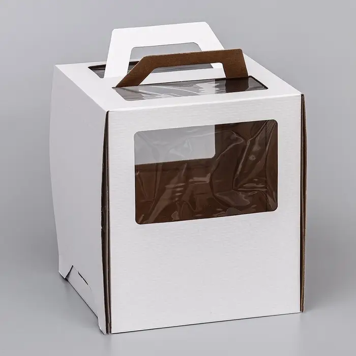 Коробка под торт 2 окна, с ручками, белая, 26×26×30 см