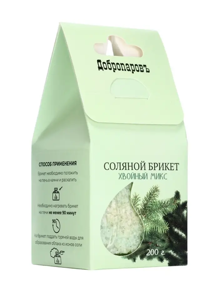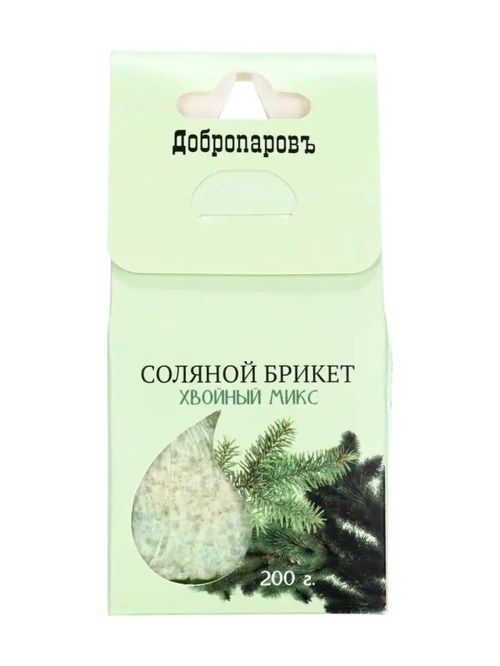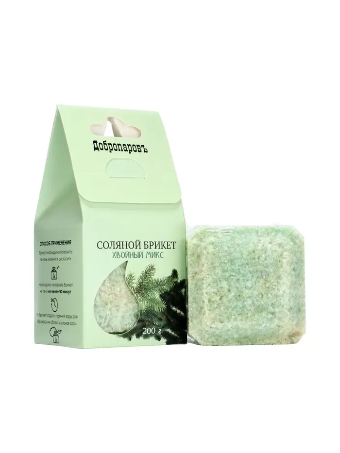 Соляной брикет куб «Хвойный микс» 200 г «Добропаровъ» пихта, сосна, ель
