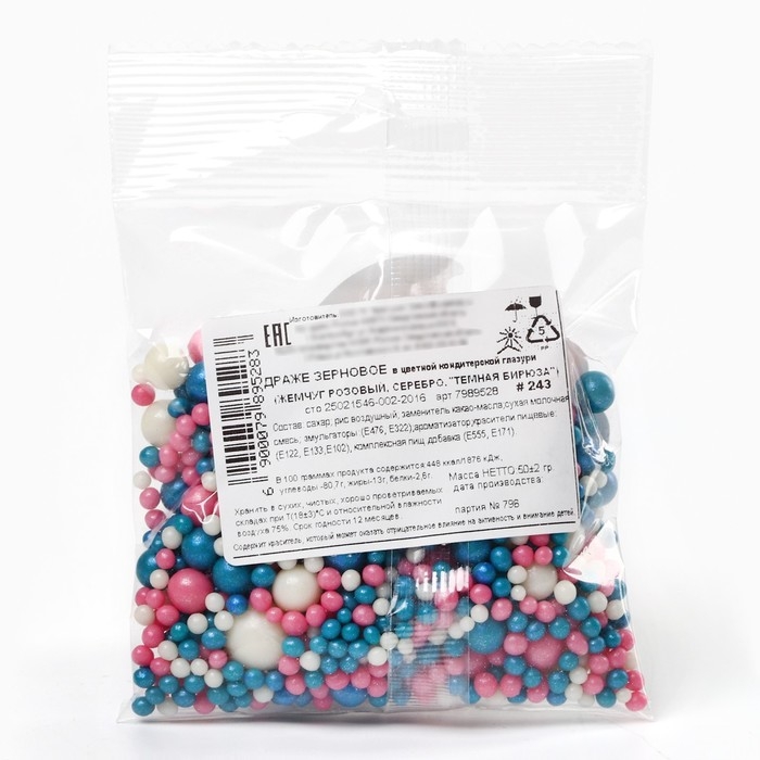 Посыпка кондитерская мягкая: голубая, розовая, белая, 50 г.