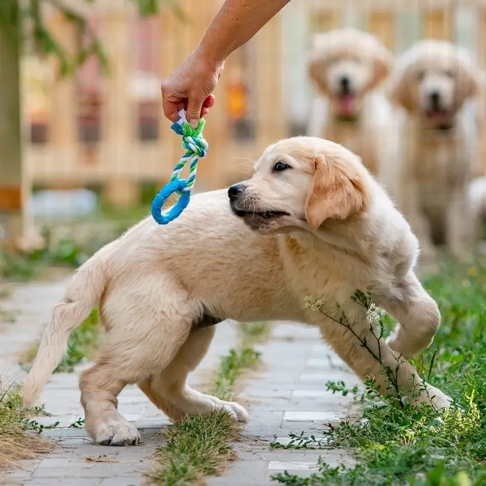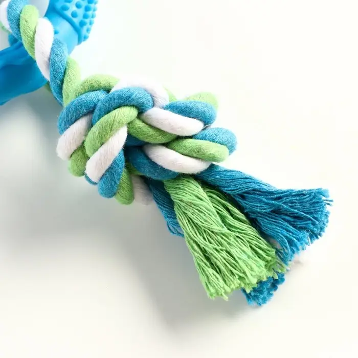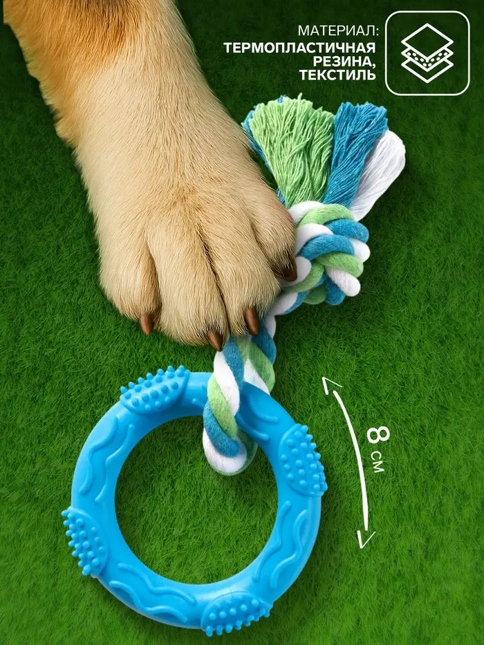 - Надежные материалы: Резиновая основа устойчива к острым зубам, а плотная оплетка из текстиля выдерживает активное перетягивание. Материалы безопасны и не имеют резкого запаха.