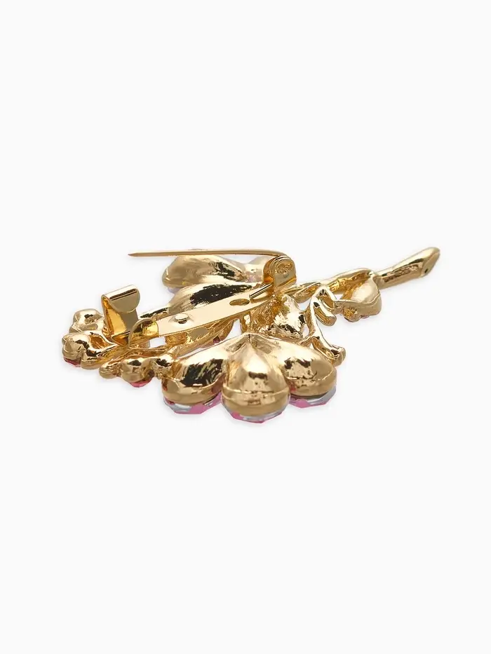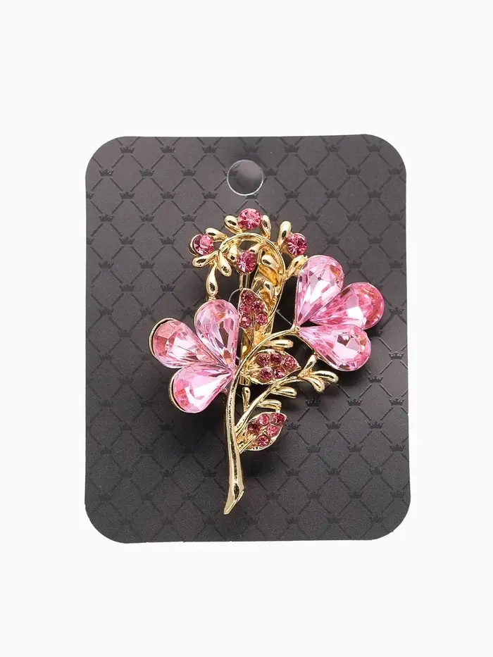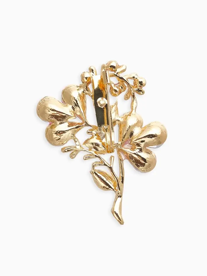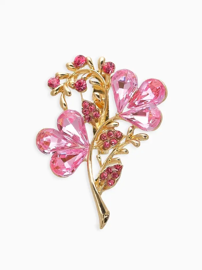 Изысканная брошь в форме трилистника с нежным розовым оттенком станет изящным акцентом в вашем образе. Металлическая основа с золотистым покрытием гармонично сочетается с вставками из полистоуна и сверкающими стразами, создавая лёгкую игру света и объёма.