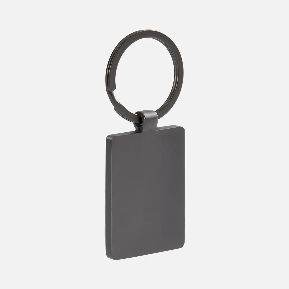 Металлический брелок со вставкой из искусственной кожи для гравировки.