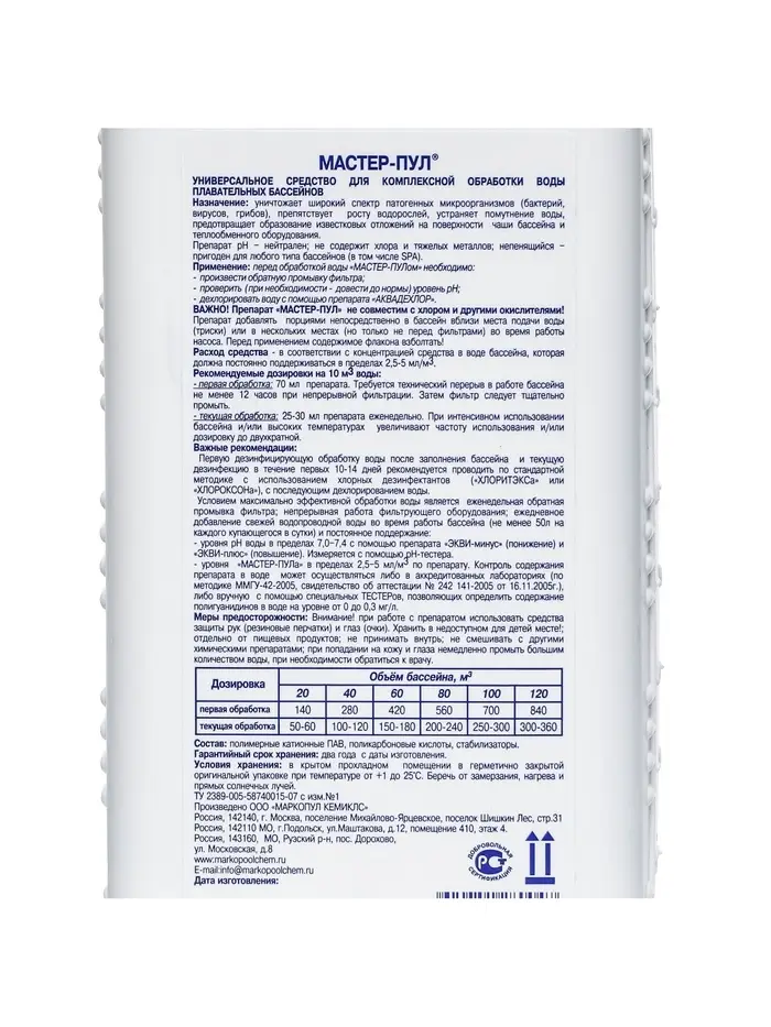 Средство для очистки воды в бассейне «Мастер-пул», универсальное, 1 л
