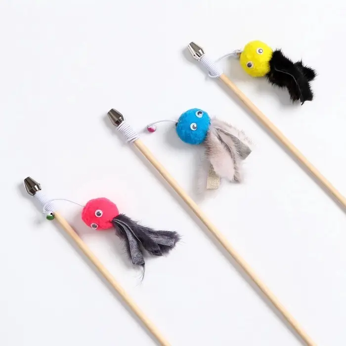 Игрушка в виде удочки для активных игр с Вашим питомцем. Отлично тренирует прыжки и другие навыки охотника. Такие игрушки для кошек относятся к типу антистрессовых игрушек.