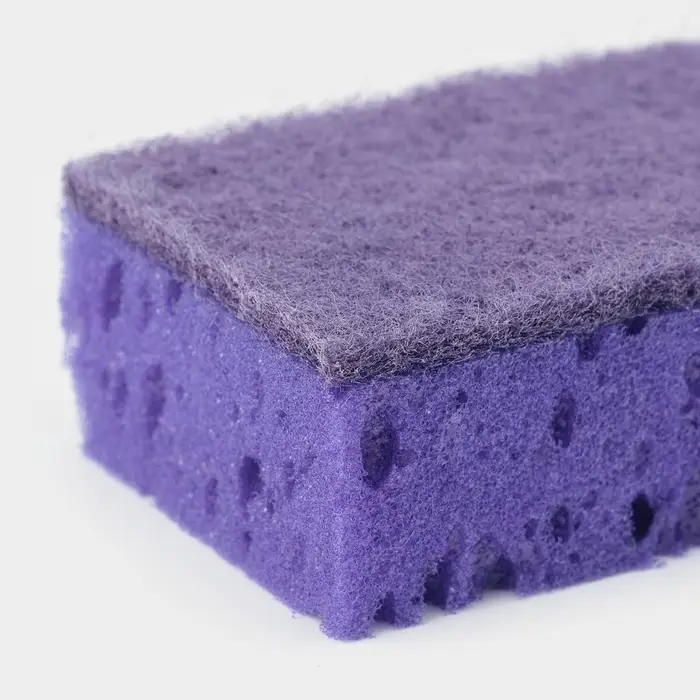 - Высокое качество материала: крупнопористый поролон эффективно удерживает моющее средство, обеспечивая обильное пенообразование и качественное мытье.