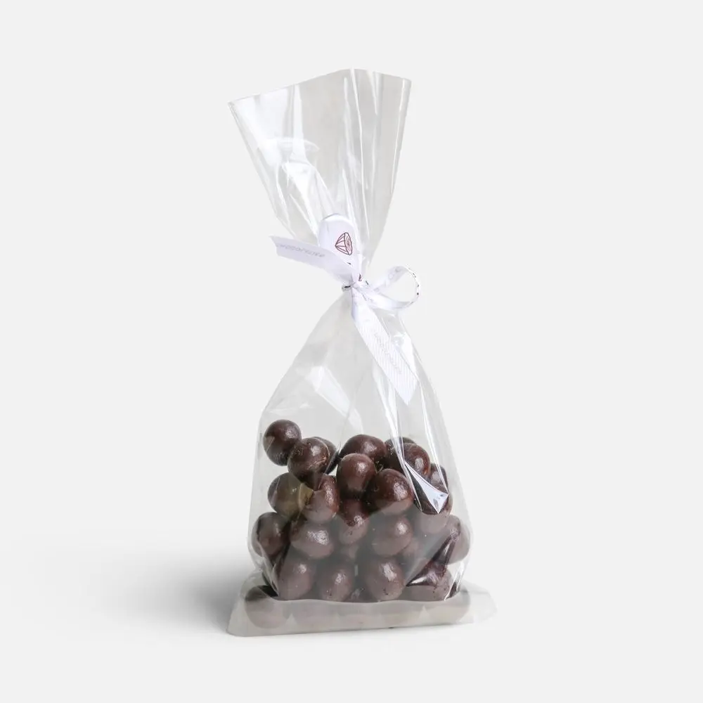 Целый обжаренный фундук в тонкой глазури из темного бельгийского шоколада — роскошный баланс хруста и бархатистой горчинки, оставляющий теплое ореховое послевкусие.